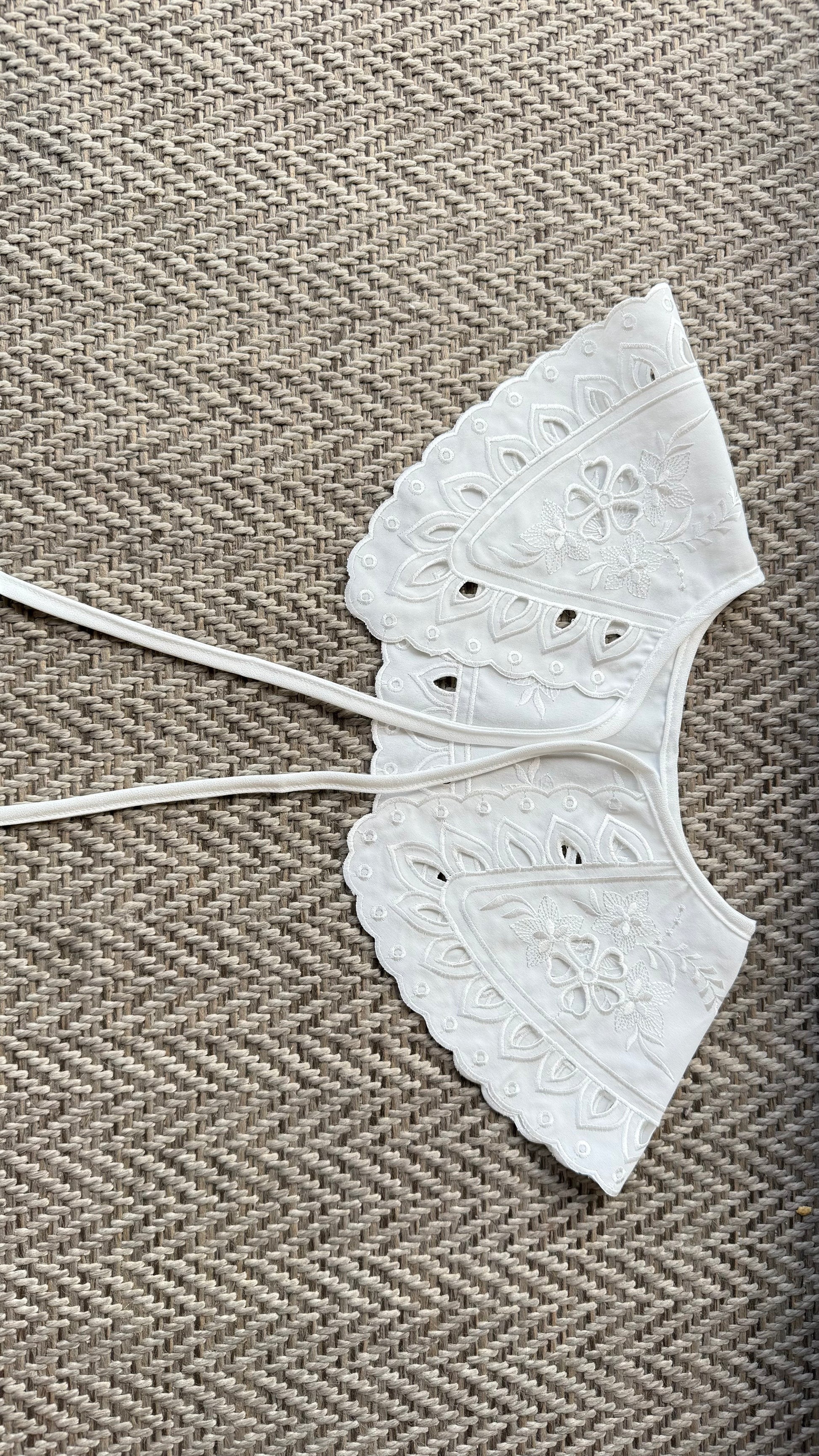 Accesorio Neck tipo cuello falso con bordado delicado. Ideal para sumar un toque especial a prendas básicas y transformar lo simple en algo más cuidado.